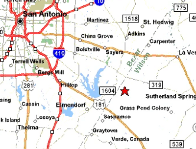 LaVernia or Victoria). Exit onto FM 1604 South for 4 Miles, take left onto